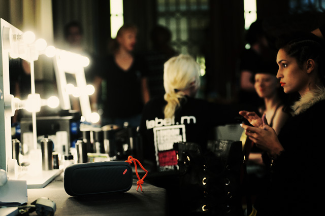 New season sponsor NudeAudio have been keeping Fashion Scout happy both backstage and in the exhibition with their wireless speakers. The compact and stylish speakers have a great sound and have been allowing models and stylists alike to play their favourite songs backstage.